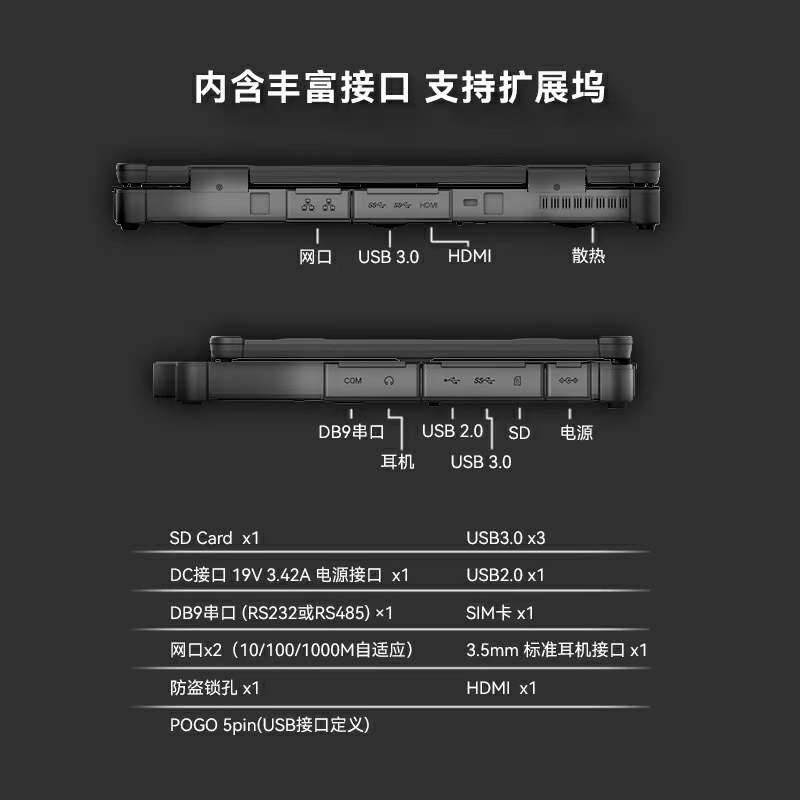 Ex NB09S contiene interfacce avanzate (porta di rete, interfaccia USB, HDMI, jack per cuffie, ecc.), supporta docking station e la ricca interfaccia migliora la propria capacità di espansione, che è conveniente per il collegamento e lo scambio di dati con altri dispositivi.