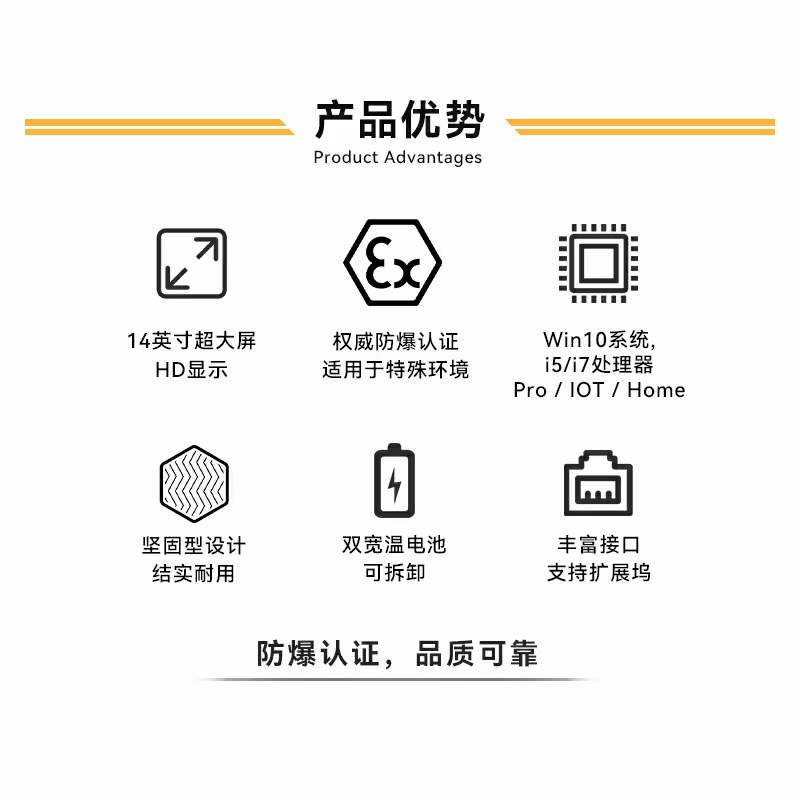 Diverso al laptop tradizionale, il a prova di esplosione computer portatile ha più funzioni come impermeabile, antipolvere, antiurto, e anti-rotolamento, in modo che possa anche da utilizzare in ambienti difficili e luoghi pericolosi esplosivi. Ea prova di esplosione laptop svolgono un ruolo importante nei sistemi di comando, emergenza, salvataggio, fuga, industria militare, aviazione, distributori di benzina, distributori di benzina, perforazioni e altri scenari applicativi.
