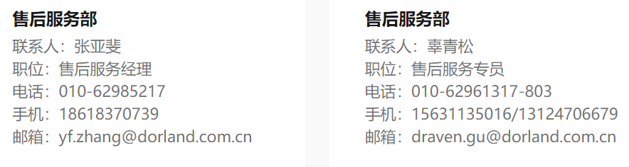 Abbiamo un sistema completo di garanzia del servizio clienti.Prima della vendita, di DORLAND team tecnico esperto di ingegnere professionista e team di vendita sarà ttecnicamente ricercare completamente il soluzioni e opzioni adatte ai clienti in base alle esigenze dei clienti.Noi supportare i clienti nella personalizzazione di software e hardware in una certa misura, in modo da formulare soluzioni diverse per le esigenze professionali dei diversi clienti.In termini di vendite, il nostro team di vendita professionale può completare perfettamente la consulenza pre-vendita del cliente e risolvere le domande e le preoccupazioni dei clienti attraverso una qualità professionale e un servizio attento.